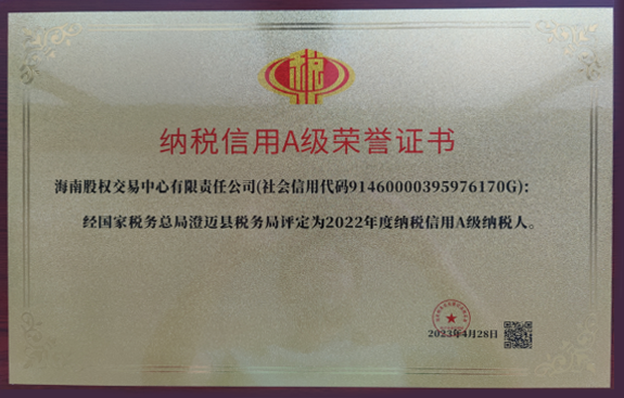 近日,在國(guó)家稅務(wù)總局澄邁縣稅務(wù)局納稅信用等級(jí)評(píng)定工作中,海南股交獲得“2022年度納稅信用A級(jí)納稅人”榮譽(yù)。海南股交自成立以來,認(rèn)真執(zhí)行國(guó)家稅收法律法規(guī)和相關(guān)制度規(guī)定,履行納稅義務(wù),積極配合稅務(wù)機(jī)關(guān)的各項(xiàng)...