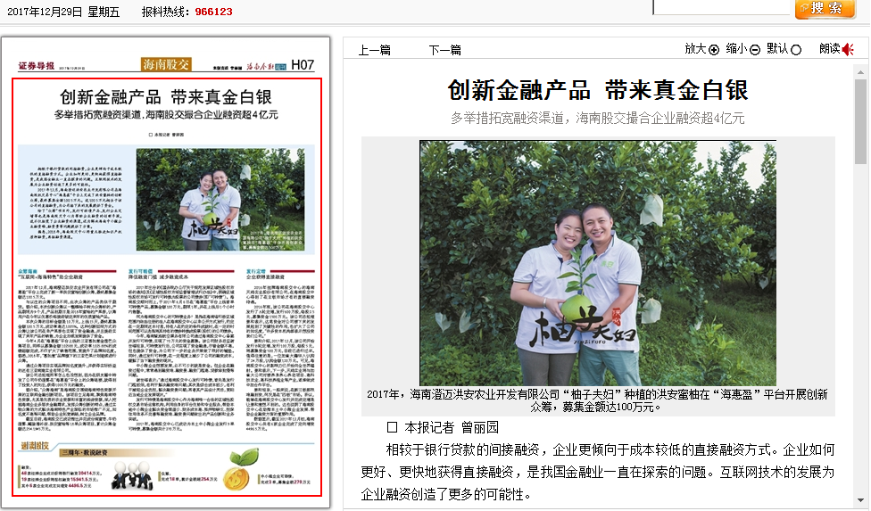 在海南股權(quán)交易中心成立三周年之際,證券導(dǎo)報以四個版面整版報道海南股權(quán)交易中心,關(guān)注股交中心三年以來的發(fā)展。其中,通過一個版面的報道——《創(chuàng)新金融產(chǎn)品帶來真金白銀》,解讀了股交中心幫助企業(yè)實現(xiàn)融資的各項...