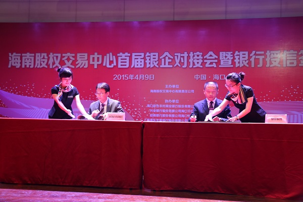 4月9日上午,海南股權(quán)交易中心首屆銀企對接會暨銀行授信簽約儀式,在??隰斈芟栴D酒店舉行。省金融辦林繼軍副主任,股交中心李曉剛董事長、韓麗總經(jīng)理,??诼?lián)合農(nóng)村商業(yè)銀行