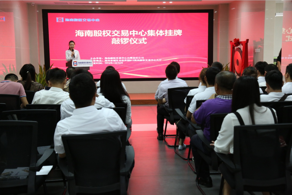 7月26日,海南股權(quán)交易中心在海南生態(tài)軟件園B13號(hào)樓一層大廳隆重舉行4家企業(yè)掛牌儀式。海南股權(quán)交易中心副總裁許博出席儀式并致辭,掛牌企業(yè)領(lǐng)導(dǎo)及嘉賓一同出席了本次儀式。