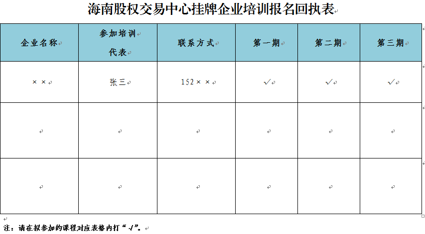 請(qǐng)有意向參加培訓(xùn)的掛牌企業(yè)于2015年7月27日前將報(bào)名回執(zhí)表發(fā)送至郵箱:yangyanghua@hnexchange.com。