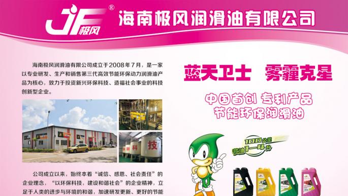 | 企業(yè)說明: | 海南極風(fēng)高科技股份有限公司是以專業(yè)研發(fā)、生產(chǎn)和銷售節(jié)能環(huán)保潤滑油產(chǎn)品為核心,致力于投資新興環(huán)保科技、造福社會事業(yè)的高新技術(shù)企業(yè)。 自主研發(fā)生產(chǎn)的 “極風(fēng)牌”節(jié)能環(huán)保汽車發(fā)動機潤滑油,以其有效降低汽車尾氣碳?xì)浠衔铮℉C)和一氧化碳(CO)排放量的環(huán)保功能,平均節(jié)油率17.47%(百公里節(jié)省燃油1-4升),有效降低汽車尾氣PM2.5顆粒物排放達(dá)36.4%,HC、CO、NOX等有毒有害氣體排放數(shù)據(jù)均優(yōu)于歐Ⅴ標(biāo)準(zhǔn),堪稱藍(lán)天衛(wèi)士、霧霾克星。因此,深受廣大用戶的認(rèn)可和好評,迅速成為汽車(船)發(fā)動機潤滑油換代升級首選的領(lǐng)先產(chǎn)品。 回顧海南極風(fēng)高科技股份有限公司的創(chuàng)業(yè)歷程,就是堅持理想創(chuàng)新發(fā)展的實踐歷程。2011年8月在中國(三亞)國際熱帶雨林汽車越野挑戰(zhàn)賽上,“極風(fēng)”成為自由島參賽車隊專用潤滑油,并助力該車隊奪得第三名,實現(xiàn)了歷史性的突破。 2011年11月獲得海南省高新技術(shù)項目認(rèn)定。 2013年2月獲得國內(nèi)同行業(yè)唯一的國家發(fā)明專利授權(quán),發(fā)明專利名稱:節(jié)能環(huán)保汽車發(fā)動機潤滑油,專利號:ZL 201110095592.6。 2013年8月順利通過ISO9001質(zhì)量管理體系認(rèn)證。 2013年5月獲得全國交通運輸節(jié)能減排推薦產(chǎn)品(技術(shù))榮譽。 2015年10月被評為高新技術(shù)企業(yè)。 公司為邁向資本市場做好準(zhǔn)備,于2015年進行了股份制改制。 今天,“極風(fēng)”正以中華傳統(tǒng)文化“太極”之“極”、漢唐精神“大風(fēng)歌”之“風(fēng)”植根市場,深入人心。