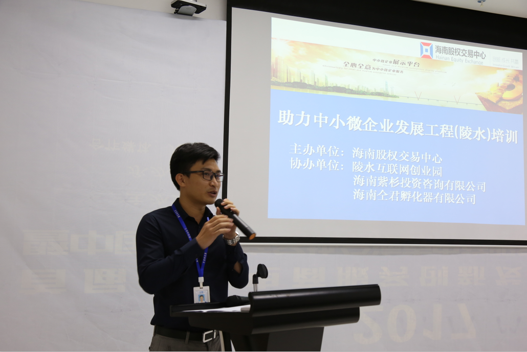 2月20日下午,海南股權(quán)交易中心主辦的“助力中小微企業(yè)發(fā)展工程”系列活動(dòng)——陵水站成功舉辦。本次活動(dòng)在陵水互聯(lián)網(wǎng)創(chuàng)業(yè)園、海南仝君孵化器有限公司、海南紫衫投資咨詢有限公司共同協(xié)辦下舉行,活動(dòng)旨在通過“助力中小微企業(yè)發(fā)展工程”使更多的中小微企業(yè)獲得發(fā)展。海南股權(quán)交易中心副總經(jīng)理程棟才,陵水互聯(lián)網(wǎng)創(chuàng)業(yè)園負(fù)責(zé)人、海南仝君孵化器有限公司運(yùn)營總監(jiān)陳烈,中國股權(quán)激勵(lì)研究院海南分院院長、深圳華一世紀(jì)海南分公司總經(jīng)理李瑞,海南銀行陵水支行、屯昌縣農(nóng)村信用社,以及50家企業(yè)家代表參加此次培訓(xùn)。