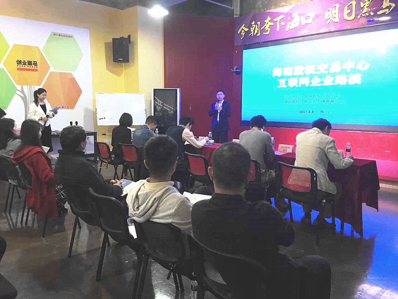 3月8日下午,海南股權(quán)交易中心在??趶?fù)興城黑馬會(huì)全球路演中心舉辦第17期企業(yè)路演。海南股權(quán)交易中心副總經(jīng)理程棟才、6家投資機(jī)構(gòu)及企業(yè)代表參加此次路演。本次活動(dòng)由黑馬會(huì)全球路演中心(海口)協(xié)辦。