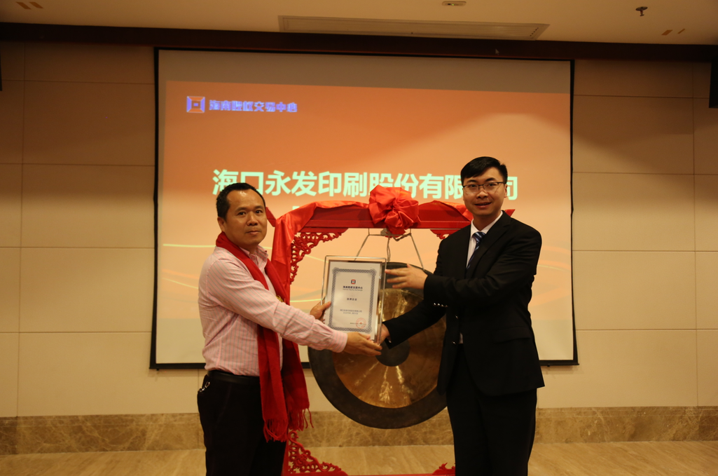 現(xiàn)場(chǎng)的企業(yè)集體掛牌儀式上,程棟才、林道冠、陳沖分別為海口永發(fā)印刷股份有限公司、海南艾納香生物科技發(fā)展股份有限公司、海南海島火山電子商務(wù)有限公司3家企業(yè)頒發(fā)證書(shū)并與企業(yè)代表合影。掛牌企業(yè)還就自身的核心產(chǎn)品、經(jīng)營(yíng)情況和業(yè)務(wù)內(nèi)容進(jìn)行了推介和宣講。