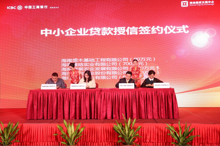 隨后,省工行吳傳武副行長(zhǎng)與5家企業(yè)正式簽訂了貸款協(xié)議和授信協(xié)議,在股交中心的撮合之下,省工行一共向5家企業(yè)提供合計(jì)2260萬元的貸款和授信。其中,海南立新實(shí)業(yè)有限公司獲得900萬元授信,海南雅晗實(shí)業(yè)有限公司獲得700萬元貸款,海南仙巖實(shí)業(yè)股份有限公司獲得300萬元授信,海南海棠農(nóng)業(yè)發(fā)展有限公司獲得270萬元貸款,海南盛木基礎(chǔ)工程有限公司獲得90萬元貸款。