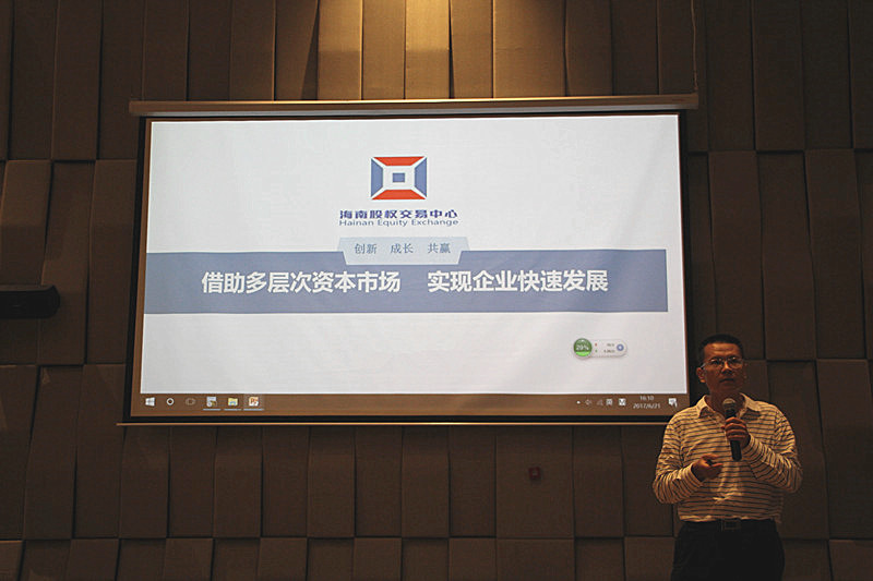 海南股權(quán)交易中心培訓(xùn)總監(jiān)馮偉民在活動上向各企業(yè)介紹股交中心的功能、作用及近期開展的工作,作為海南省唯一合法的區(qū)域性股權(quán)交易市場運營機構(gòu),股交中心積極集聚金融資源,積極發(fā)揮規(guī)范、培育、輔導(dǎo)等功能和作用,完善融資渠道和融資方式,大力解決企業(yè)發(fā)展難題。