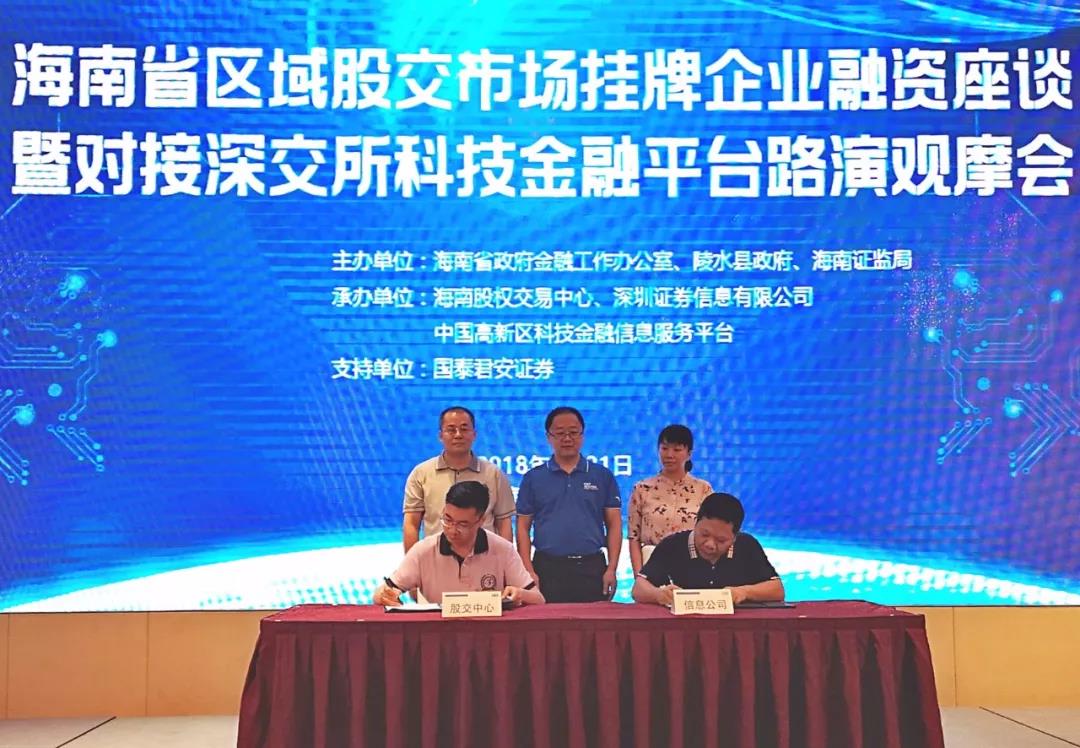 為支持我省區(qū)域性股權(quán)市場發(fā)展,加強海南股權(quán)交易中心掛牌企業(yè)與深圳證券交易所的有效對接,將省外資本與我省重點產(chǎn)業(yè)掛牌企業(yè)發(fā)展相融合,更大范圍拓寬我省中小企業(yè)融資渠道,更好地服務(wù)海南自由貿(mào)易區(qū)(港)建設(shè),7月31日,海南省政府金融工作辦公室、陵水縣政府和海南證監(jiān)局聯(lián)合在陵水縣舉辦海南省區(qū)域股交市場掛牌企業(yè)融資座談暨深交所科技金融平臺路演觀摩會?;顒佑珊D瞎蓹?quán)交易中心、深圳證券信息有限公司和中國高新區(qū)科技金融信息服務(wù)平臺一同承辦,并獲得國泰君安證券的大力支持。