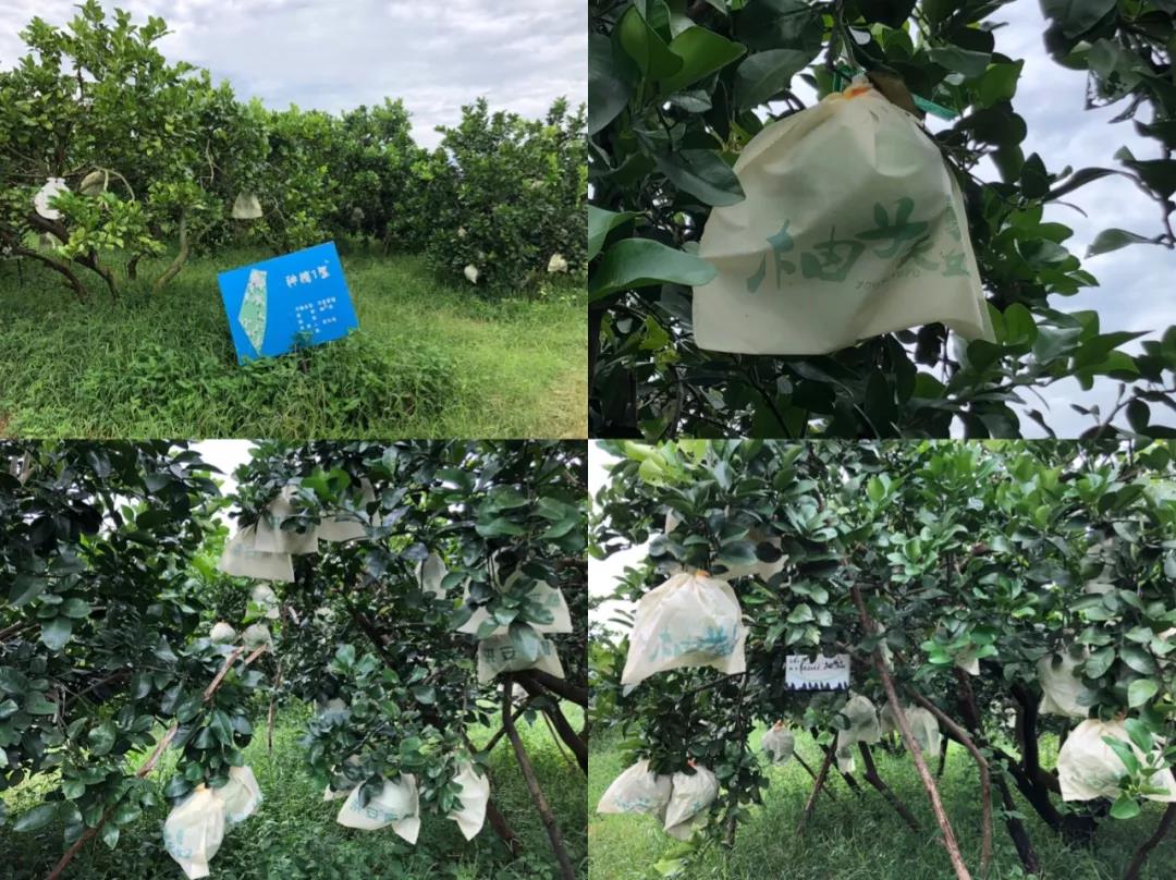 小編看到,目前所有參與眾籌的蜜柚果樹每棵皆碩果累累,壓得樹枝彎下了腰,為了防止暴雨暴曬蟲害等外部因素對(duì)蜜柚生長的影響,洪安莊園還給即將被采摘的蜜柚一個(gè)個(gè)單獨(dú)穿上了印有“柚子夫婦”logo的“外衣”,每棵樹也有自己單獨(dú)的編號(hào)和姓名牌,生長得飽滿豐盈的蜜柚就等待著主人們的采摘啦