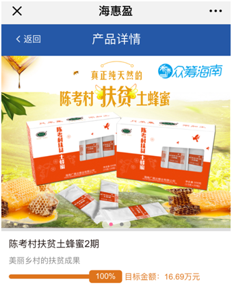 陳考村自然條件優(yōu)越,所生產(chǎn)的蜂蜜產(chǎn)品綠色、健康、原生態(tài),但由于地理位置偏遠(yuǎn),交通及物流不通暢,也沒(méi)有蜂蜜加工和銷(xiāo)售企業(yè),土蜂蜜銷(xiāo)售難一直是村民最頭疼的問(wèn)題。為了幫助當(dāng)?shù)卮迕窠鉀Q產(chǎn)品銷(xiāo)售難題,在海南證監(jiān)局的指導(dǎo)下,股交中心于今年4月在旗下綜合金融服務(wù)平臺(tái)海惠盈推出首單陳考村扶貧土蜂蜜眾籌,產(chǎn)品一經(jīng)推出備受廣大消費(fèi)者好評(píng),不僅為當(dāng)?shù)剞r(nóng)戶(hù)實(shí)現(xiàn)了增收,也打開(kāi)了產(chǎn)品市場(chǎng)知名度。
