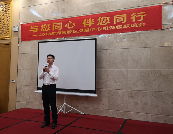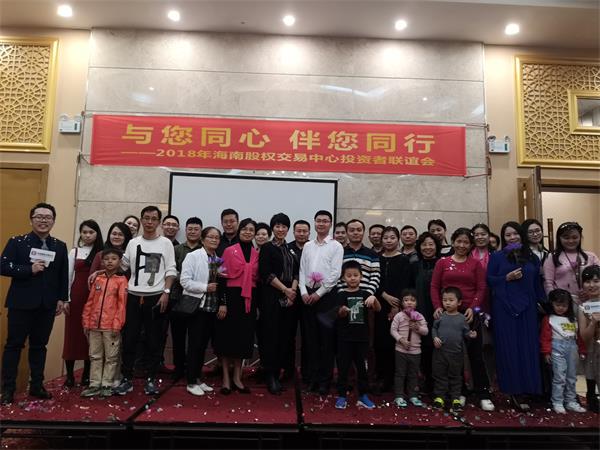 為感謝投資者長期以來的支持與厚愛,2018年12月9日下午,海南股交在??趯毎l(fā)勝意酒店舉行了以“與您同心 伴您同行”為主題的投資者聯(lián)誼會。海南股交執(zhí)行總經(jīng)理程棟才出席活動與60多位投資者及親屬齊聚一堂,共同分享企業(yè)發(fā)展成果,展望美好明天。