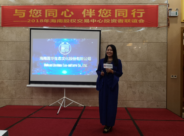聯(lián)誼會現(xiàn)場,海南蓮華(海南股交掛牌企業(yè))總經(jīng)理賀霞進行了企業(yè)介紹及產(chǎn)品展示,并分享了企業(yè)在海南股交掛牌后借助資本市場力量推動企業(yè)持續(xù)健康發(fā)展的成功經(jīng)驗。
