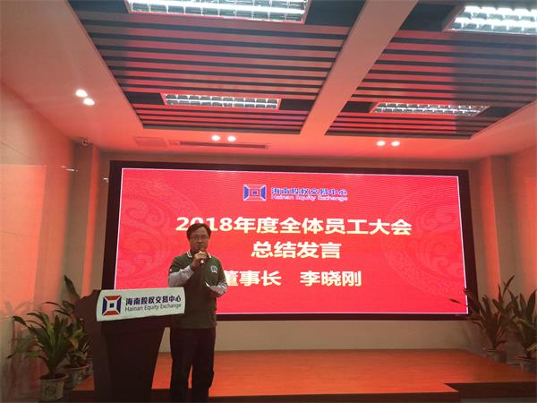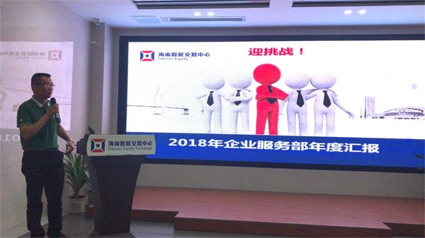 1月10日,海南股交在海南生態(tài)軟件園B13號樓召開2018年度工作總結(jié)大會。會議對2018年工作進行了梳理,并對2019年工作進行了展望,提出了下一步的工作任務和要求。海南股交董事長李曉剛、總經(jīng)理班淼琦、執(zhí)行總經(jīng)理程棟才、副總經(jīng)理兼財務總監(jiān)唐玉萍等領導班子、中層骨干,以及海南股交全體員工參加了本次會議。會議由執(zhí)行總經(jīng)理程棟才主持。