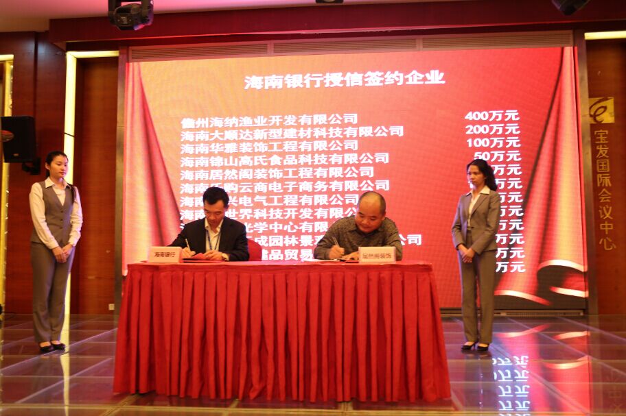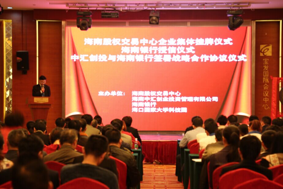 1月15日,海南股權(quán)交易中心企業(yè)集體掛牌暨銀行授信簽約儀式,在??趯毎l(fā)幸福酒店舉行。本次活動(dòng)由海南股權(quán)交易中心、海南中匯創(chuàng)業(yè)投資管理有限公司、海南銀行、??趪掖髮W(xué)科技園聯(lián)合主辦。37家企業(yè)現(xiàn)場(chǎng)集體掛牌海南股權(quán)交易中心,其中12家企業(yè)獲得海南銀行合計(jì)額度2100萬元的授信。
