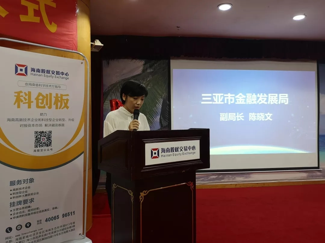 陳曉文在發(fā)言中首先對企業(yè)成功掛牌表示祝賀,并對海南股交的大力支持表示感謝。她說,在多層次資本市場上市掛牌融資,是企業(yè)擴大規(guī)模、加快發(fā)展、提高運行質(zhì)量和核心競爭力的有效手段。一個地方企業(yè)上市數(shù)量的多少,是這個地方經(jīng)濟活躍程度和競爭能力強弱的重要標志,體現(xiàn)了這個地方企業(yè)的總體發(fā)展水平。此次集中掛牌不僅是三亞市推動企業(yè)對接資本市場工作的一次集中展示,也是宣傳并提升企業(yè)品牌影響力的重要機遇。今后,三亞金融發(fā)展局將持續(xù)加大對企業(yè)上市掛牌工作的支持力度,為發(fā)展多層次資本市場制定相關(guān)政策鼓勵企業(yè)掛牌上市,進一步拓寬企業(yè)融資渠道。同時他希望企業(yè)要以此次掛牌為契機,利用海南股交在融資、展示、輔導(dǎo)等方面的功能和優(yōu)勢,進一步規(guī)范治理結(jié)構(gòu)、建立現(xiàn)代企業(yè)制度、拓寬融資渠道、樹立品牌形象,實現(xiàn)創(chuàng)新發(fā)展和轉(zhuǎn)型升級。