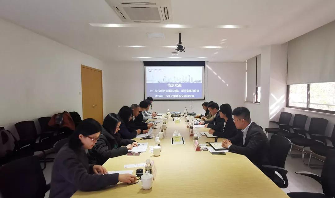 12月9日上午,浙江股權(quán)服務(wù)集團(tuán)副總裁、浙里金服總經(jīng)理謝定能一行到訪海南股交進(jìn)行調(diào)研交流。公司執(zhí)行總經(jīng)理程棟才、總經(jīng)理助理王慧敏、卜麗麗、吳杰參加座談交流。