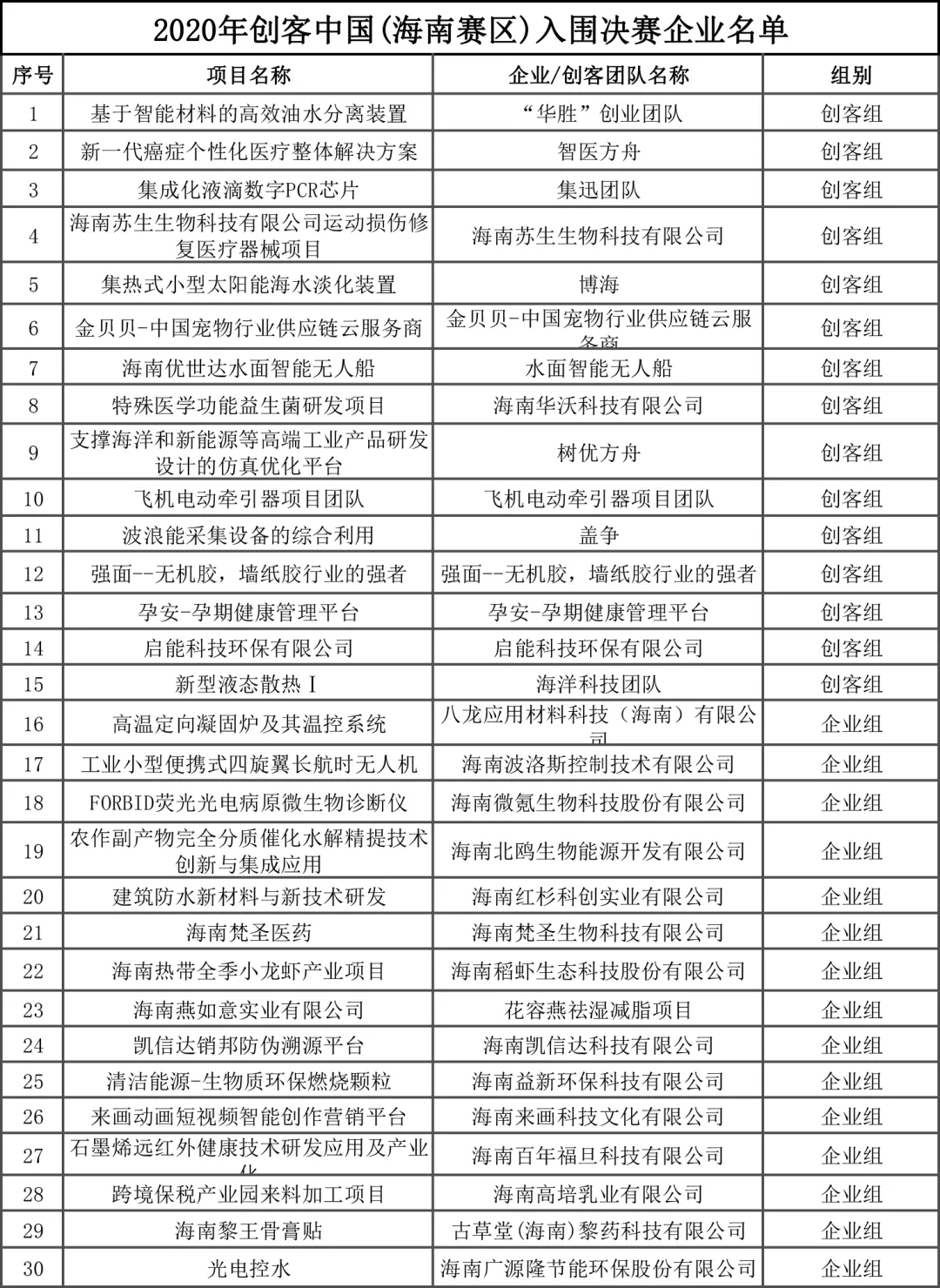 現(xiàn)將入圍的企業(yè)組和創(chuàng)客組項(xiàng)目名單公示如下(排名不分先后)