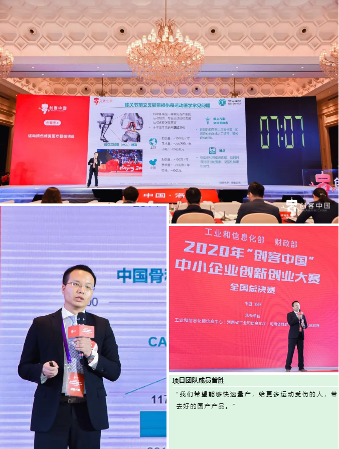 近日,由工業(yè)和信息化部、財政部、河南省人民政府主辦的2020年“創(chuàng)客中國”中小企業(yè)創(chuàng)新創(chuàng)業(yè)大賽全國總決賽在河南省洛陽市舉辦。代表海南出賽的海南蘇生生物科技有限公司的“運動損傷修復醫(yī)療器械”項目從全國25388個參賽項目中脫穎而出并入選總決賽,最終獲得總決賽創(chuàng)客組二等獎、生物醫(yī)藥類項目第一,為海南省企業(yè)參與創(chuàng)客中國大賽歷史最好成績。海南省工業(yè)和信息化廳、海南省財政廳榮獲2020年“創(chuàng)客中國”大賽優(yōu)秀組織單位,海南股權(quán)交易中心榮獲優(yōu)秀對接服務單位。