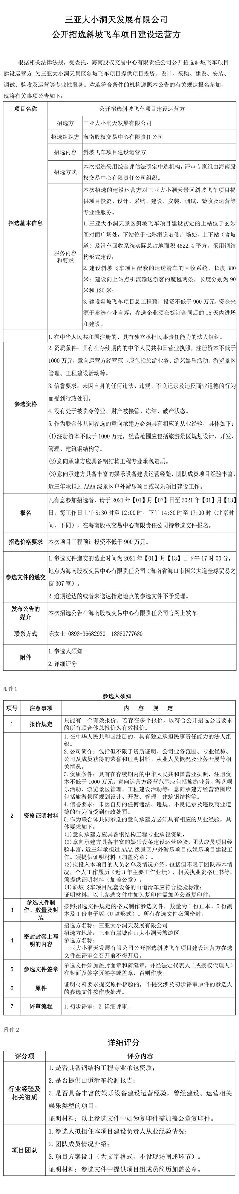 關(guān)于三亞大小洞天發(fā)展有限公司公開招選斜坡飛車項目建設(shè)運營方的公告
