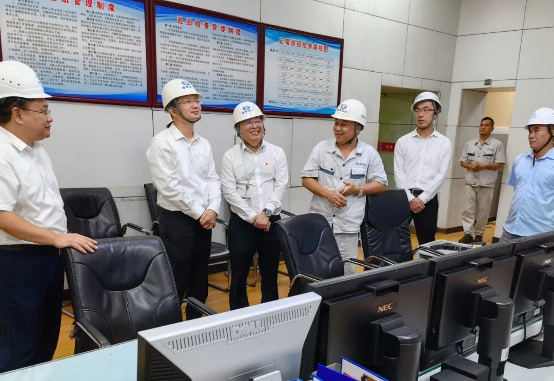 在牛路嶺水電站大壩,周軍平深入中央控制室、機(jī)房、泄洪口等地,詳細(xì)了解水電站安全生產(chǎn)情況,強(qiáng)調(diào)要堅(jiān)決守牢安全生產(chǎn)底線,保持技術(shù)優(yōu)勢,追求技術(shù)創(chuàng)新,謀劃做好“低碳”“零碳”文章,服務(wù)海南國家生態(tài)文明試驗(yàn)區(qū)建設(shè)。瓊海市委副書記、市長傅晟,瓊海市委常委、副市長潘艷紅,瓊海市副市長張笑寒,瓊海市發(fā)改委、資規(guī)局、財(cái)政局、生態(tài)環(huán)境局、城投公司參加座談會(huì);海南控股黨委副書記肖發(fā)宣,黨委委員、副總經(jīng)理叢勁松,辦公室(黨辦)、投資與運(yùn)營管理部、海南機(jī)場、??啬茉础⒑?刂脴I(yè)、美麗鄉(xiāng)村、博鰲機(jī)場、博鰲樂城開發(fā)公司等相關(guān)負(fù)責(zé)人分別參加當(dāng)天活動(dòng)。