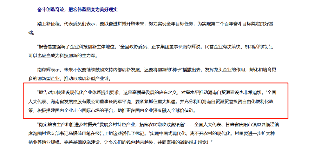 “報(bào)告對(duì)加快建設(shè)現(xiàn)代化產(chǎn)業(yè)體系提出要求,這是高質(zhì)量發(fā)展的應(yīng)有之義,對(duì)高水平推動(dòng)海南自貿(mào)港建設(shè)也非常迫切?!比珖?guó)人大代表、海南省發(fā)展控股有限公司董事長(zhǎng)周軍平說(shuō),要緊緊抓住重大機(jī)遇,并充分利用海南自貿(mào)港貿(mào)易投資自由化便利化政策,積極搭建國(guó)內(nèi)企業(yè)走向國(guó)際市場(chǎng)的平臺(tái),助推更多國(guó)內(nèi)企業(yè)深度融入全球價(jià)值鏈。