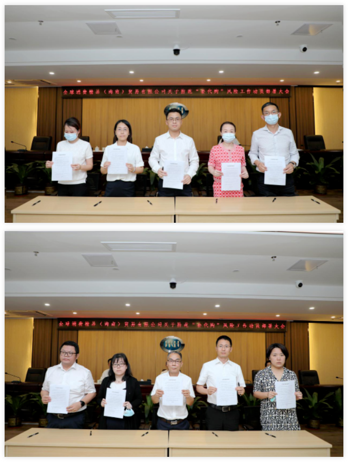 5月6日下午,在全省打擊走私工作會(huì)議結(jié)束后,??厝蚓费杆俳M織召開防范“套代購”風(fēng)險(xiǎn)工作動(dòng)員部署會(huì),學(xué)習(xí)貫徹習(xí)近平總書記關(guān)于防控“套代購”走私重要指示批示精神和省委書記馮飛、省政府代省長劉小明重要講話精神以及陳懷宇副省長專題會(huì)議精神,對(duì)全球精品防范“套代購”風(fēng)險(xiǎn)作出安排部署。海南控股黨委書記、董事長周軍平出席會(huì)議并提出工作要求。