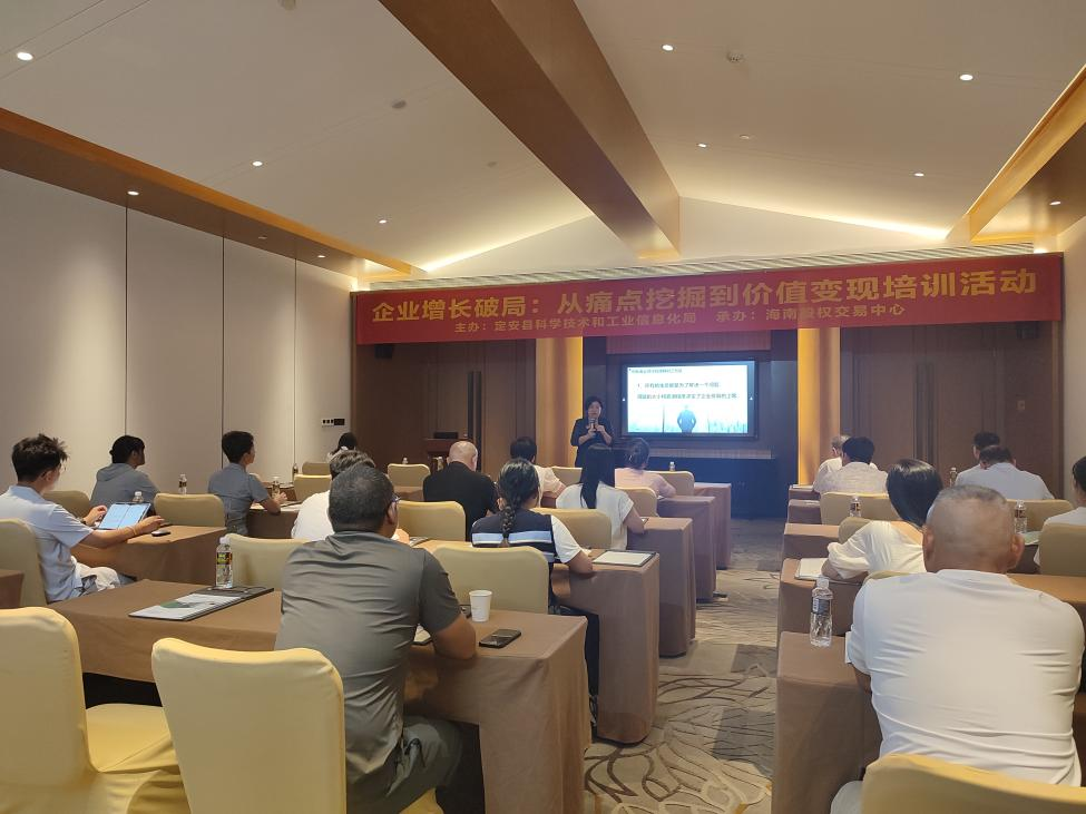 為助力本地中小企業(yè)應(yīng)對(duì)市場(chǎng)挑戰(zhàn),突破增長(zhǎng)瓶頸,10月14日,由定安縣科學(xué)技術(shù)和工業(yè)信息化局主辦、海南股權(quán)交易中心承辦的“企業(yè)增長(zhǎng)破局:從痛點(diǎn)挖掘到價(jià)值變現(xiàn)”專題培訓(xùn)活動(dòng),在定安成功舉辦。本次活動(dòng)吸引了定安縣眾多中小企業(yè)負(fù)責(zé)人及管理者參與。