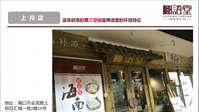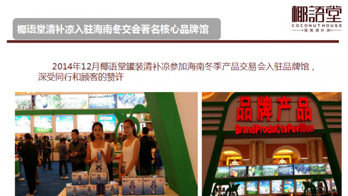 海南椰鄉(xiāng)村實(shí)業(yè)有限公司是海南省工商行政管理局批準(zhǔn)成立的有限責(zé)任公司,公司注冊(cè)資金2300萬(wàn),在職員工103人。公司下轄全資子公司??谝Z(yǔ)堂餐飲文化有限公司及??谝Z(yǔ)堂食品營(yíng)養(yǎng)科學(xué)研究院。公司根據(jù)發(fā)展目前分為三個(gè)事業(yè)部:椰語(yǔ)堂店面連鎖事業(yè)部、產(chǎn)品事業(yè)部、椰語(yǔ)堂食品營(yíng)養(yǎng)科學(xué)研究院。椰語(yǔ)堂店面連鎖事業(yè)部主要負(fù)責(zé)椰語(yǔ)堂連鎖店面的擴(kuò)張和關(guān)聯(lián)產(chǎn)業(yè)的拓展業(yè)務(wù);產(chǎn)品事業(yè)部主要負(fù)責(zé)以罐裝清補(bǔ)涼等快消品市場(chǎng)的開(kāi)拓,如目前所進(jìn)行的椰語(yǔ)堂椰奶清補(bǔ)涼工業(yè)化項(xiàng)目就是最具代表性的一項(xiàng)研究工作;椰語(yǔ)堂食品營(yíng)養(yǎng)科學(xué)研究院主要為椰語(yǔ)堂本身和第三方進(jìn)行有關(guān)食品營(yíng)養(yǎng)、配餐、產(chǎn)品研發(fā)等方面的工作,未來(lái)是椰語(yǔ)堂核心競(jìng)爭(zhēng)力的重要部分。 椰語(yǔ)堂是海南首家把海南本土以清補(bǔ)涼為代表的小吃精致化、系統(tǒng)化、標(biāo)準(zhǔn)化和研發(fā)體系化并進(jìn)行連鎖發(fā)展的企業(yè),公司致力于傳播海南文化、打造海南本土休閑美食的第一品牌。公司成立于2012年,并創(chuàng)立【椰語(yǔ)堂】品牌, 現(xiàn)已在海南望海國(guó)際廣場(chǎng)、南亞廣場(chǎng)、中山路騎樓老街、美蘭國(guó)際機(jī)場(chǎng)、上邦商業(yè)廣場(chǎng)、天涯海角景區(qū)、??谀蟻啅V場(chǎng)、廣東中山市、??趪?guó)貿(mào)大道正昊店、三亞亞龍灣熱帶天堂森林公園、??谟颜x廣場(chǎng)店等地開(kāi)設(shè)11家連鎖店并開(kāi)始北京、天津、遼寧、江蘇等島外市場(chǎng)的拓展,由于其濃郁的海南本土特色和優(yōu)秀的品質(zhì)感受到社會(huì)各界的廣泛好評(píng),椰語(yǔ)堂椰奶清補(bǔ)涼等六款小吃被餐飲行業(yè)權(quán)威機(jī)構(gòu)海南省烹飪協(xié)會(huì)、海南省瓊菜研究中心評(píng)為海南名小吃和海南瓊菜(風(fēng)味小吃)一級(jí)品牌名店。央視CCTV-2、旅游衛(wèi)視、海南電視臺(tái)、內(nèi)蒙衛(wèi)視、海南日?qǐng)?bào)、航空高端雜志【云端】、中國(guó)美食第一刊【東方美食】【餐飲經(jīng)理人】、【勇闖地球主持人伊恩.萊特】、【新浪美食】、【南島視界】、【海南旅游商品協(xié)會(huì)雜志創(chuàng)刊號(hào)】、去哪兒吃【海南美食】食尚海南等國(guó)內(nèi)外知名媒體都進(jìn)行了宣 傳報(bào)道,成為了海南文化的傳播和弘揚(yáng)者,并打造成展示海南國(guó)際旅游島本土文化的一張亮麗名片。 海南椰鄉(xiāng)村實(shí)業(yè)有限公司注冊(cè)成立了“海口椰語(yǔ)堂食品營(yíng)養(yǎng)科學(xué)研究院”并和海南大學(xué)食品學(xué)院深度合作,充分利用海南大學(xué)食品學(xué)院的科研力量和實(shí)驗(yàn)設(shè)備,集結(jié)了海南大學(xué)和其它領(lǐng)域的教授、專家,進(jìn)行產(chǎn)品的研發(fā)和標(biāo)準(zhǔn)的制定,定期進(jìn)行營(yíng)養(yǎng)成分抽檢和出品品質(zhì)監(jiān)控,旨在為消費(fèi)者提供食品更加安全、營(yíng)養(yǎng)更加豐富、品種更加齊全的海南本土特色休閑美食。 2014年,政府為發(fā)展海南省地方特色產(chǎn)業(yè),從眾多的申報(bào)項(xiàng)目中篩選后對(duì)我司進(jìn)行了300萬(wàn)人民幣股權(quán)投資。 2014年12月,我司受邀參加2014年中國(guó)(海南)國(guó)際熱帶農(nóng)產(chǎn)品冬季交易會(huì),我司推出的“椰語(yǔ)堂罐裝清補(bǔ)涼”在海南省品牌館和海口市品牌館進(jìn)行展示。本產(chǎn)品原材料全部選用消暑降溫的天然粗糧為原料,配以海南100%的椰奶原汁制作而成,品質(zhì)純正、綠色、天然又健康,清涼可口、營(yíng)養(yǎng)又健康。通過(guò)此次展會(huì),“椰語(yǔ)堂罐裝清補(bǔ)涼”贏得了島內(nèi)外顧客的一致好評(píng),成為此次冬交會(huì)上獨(dú)具一格的風(fēng)景。 2015年3月,我司“椰語(yǔ)堂罐裝清補(bǔ)涼”正式成為亞洲博鰲論壇專供產(chǎn)品,為世界各國(guó)領(lǐng)導(dǎo)人所品用。 目前在??跈C(jī)場(chǎng)、??谥寥齺唲?dòng)車(chē)、廣深高鐵、部分商場(chǎng)、淘寶等互聯(lián)網(wǎng)渠道已經(jīng)開(kāi)始椰語(yǔ)堂灌裝清補(bǔ)涼產(chǎn)品的銷(xiāo)售。 |